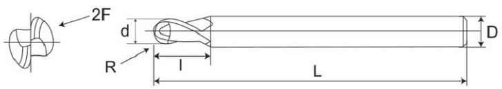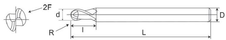 2-Flute ball end mill