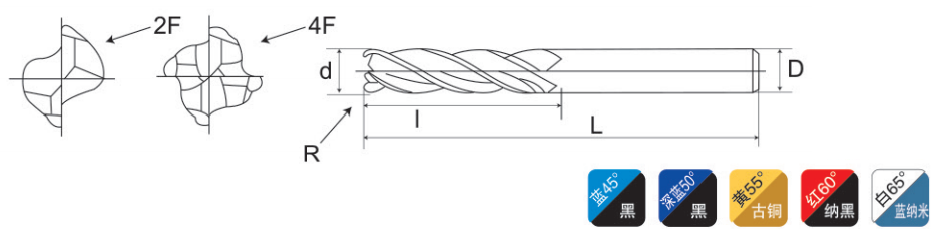 Milling cutter applications: stainless steel, cast iron, aluminum, copper, graphite, plastics, composite materials, titanium alloys, nickel, heat-resistant steel, non-alloy steel, low alloy steel <24HRC, high alloy steel