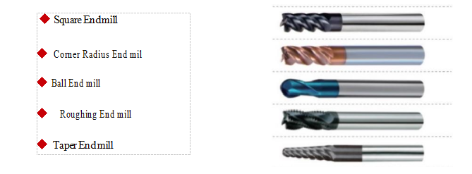 - Type: Square End Mill / Corner Radius End Mill / Ball End Mill / Roughing End Mill / Taper End Mill