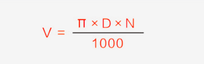 V=Cutting speed(m/min) π=3.14 D=Diameter(mm) N=Rotating speed(mm-¹) |