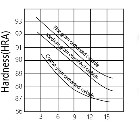 Due to the large amount of hard carbides in cemented carbide, its hardness is much higher than that of high-speed steel. The hardness of YG cemented carbide for cutting is generally HRA88~93, and the hardness of YT cemented carbide is HRA89~94. The higher the content of binder cobalt in cemented carbide (the lower the content of hard phase carbides), the lower the hardness of the alloy.