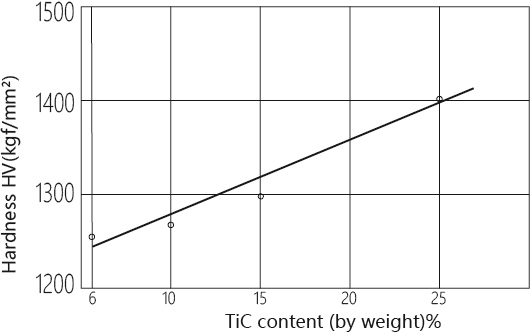 Relationship between hardness and TiC content of WC-TiC-Co alloy containing Co9%